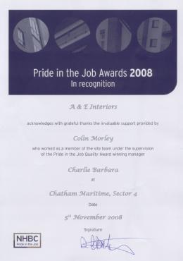 We have been awarded Countryside Properties "Pride in the Job Award" for 2008 for our outstanding contribution to their Chatham Maritime development.